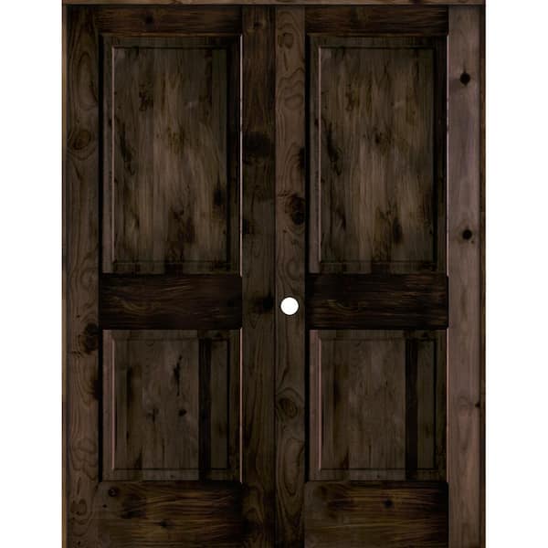 56 in. x 80 in. Rustic Knotty Alder 2-Panel Right-Handed Black Stain Wood Double Prehung Interior Door with Square-Top