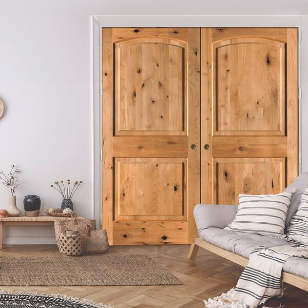 56 in. x 80 in. Rustic Knotty Alder 2-Panel Universal/Reversible Clear Stain Wood Double Prehung Interior Door
