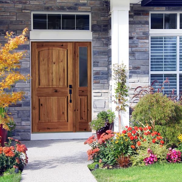 56 in. x 80 in. Rustic knotty alder 2 Panel Left-Hand/Inswing Clear Glass Black Stain Wood Prehung Front Door with RHSL