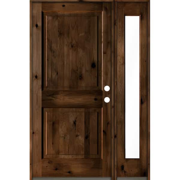 56 in. x 80 in. knotty alder Left-Hand/Inswing Clear Glass Provincial Stain Square Top Wood Prehung Front Door w/RFSL