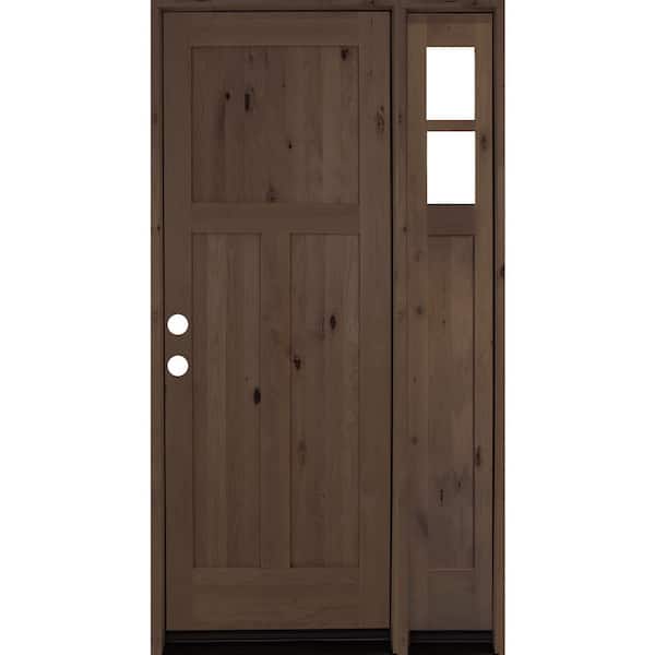 56 in. x 96 in. Alder 3 Panel Right-Hand/Inswing Clear Glass Provincial Stain Wood Prehung Front Door w/Right Sidelite