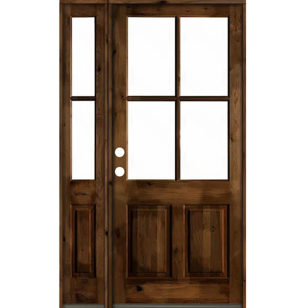 56 in. x 96 in. Alder Right-Hand/Inswing 4-Lite Clear Glass Provincial Stain Wood Prehung Front Door/Left Sidelite