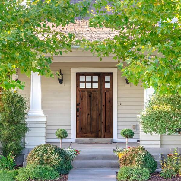 56 in. x 96 in. Craftsman Alder 2 Panel Right-Hand 6 Lite Clear Glass DS Red Mahogany Wood Prehung Front Door/Sidelite