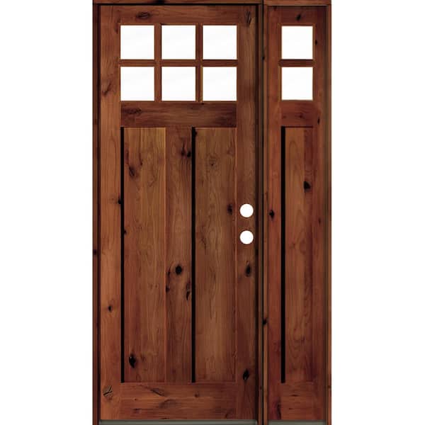 56 in. x 96 in. Craftsman Alder 3-Panel Left-Hand 6-Lite Clear Glass Red Chestnut Wood Prehung Front Door/Right Sidelite