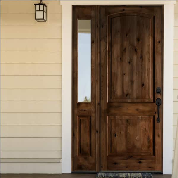 56 in. x 96 in. Knotty Alder 2 Panel Left-Hand/Inswing Clear Glass Provincial Stain Wood Prehung Front Door