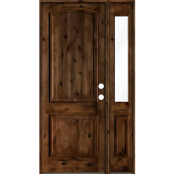 56 in. x 96 in. Knotty Alder 2 Panel Left-Hand/Inswing Clear Glass Provincial Stain Wood Prehung Front Door w/Sidelite