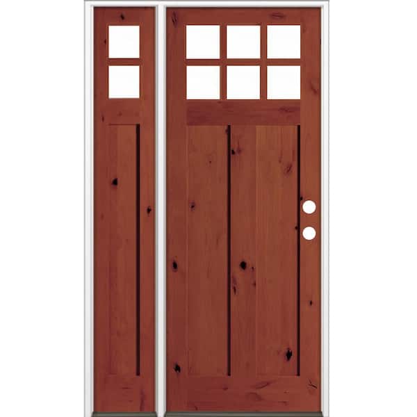 56 in. x 96 in. Knotty Alder Left-Hand/Inswing 6-Lite Beveled Clear Glass Amaretto Stain Wood Prehung Front Door w/ LSL