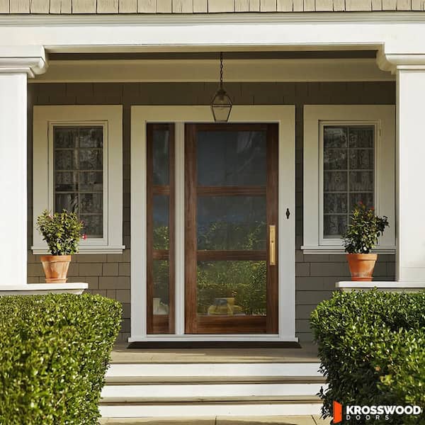 56 in. x 96 in. Modern Hemlock Left-Hand/Inswing 3-Lite Clear Glass Provincial Stain Wood Prehung Front Door with LSL