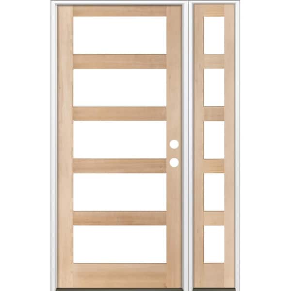 56 in. x 96 in. Modern Hemlock Left-Hand/Inswing 5-Lite Clear Glass unfinished Wood Prehung Front Door w/Right Sidelite