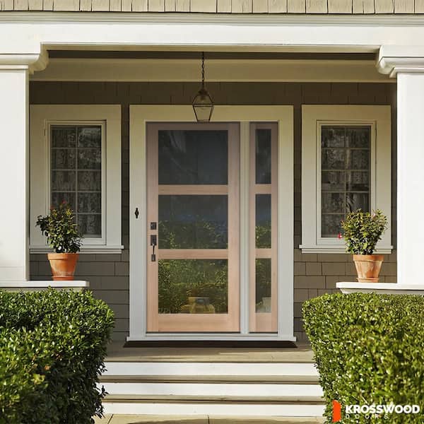 56 in. x 96 in. Modern Hemlock Right-Hand/Inswing 3-Lite Clear Glass Unfinished Wood Prehung Front Door w/Right Sidelite