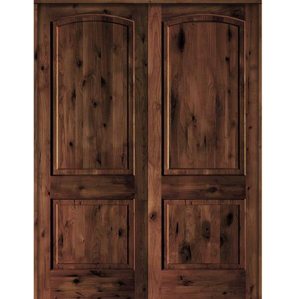 56 in. x 96 in. Rustic Knotty Alder 2-Panel Universal/Reversible Red Mahogany Stain Wood Double Prehung Interior Door
