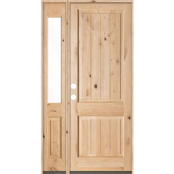 56 in. x 96 in. Rustic Knotty Alder Sq-Top VG Unfinished Right-Hand Inswing Prehung Front Door with Left Half Sidelite