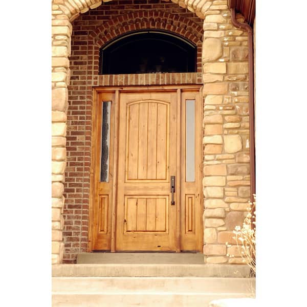 56 in. x 96 in. Rustic knotty alder Left-Hand/Inswing Clear Glass Red Mahogany Stain Wood Prehung Front Door w/Sidelite