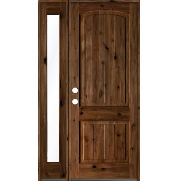 56 in. x 96 in. Rustic knotty alder Right-Hand/Inswing Clear Glass Provincial Stain Wood Prehung Front Door w/Sidelite