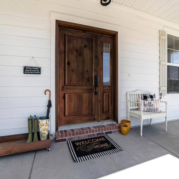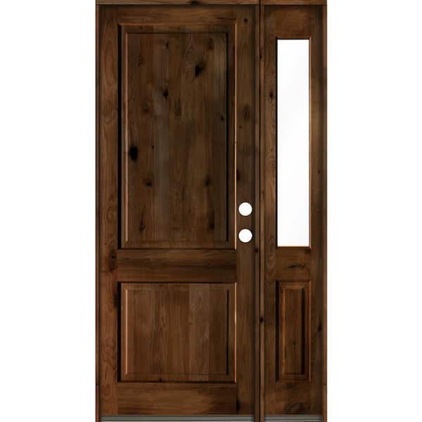 56 in. x 96 in. knotty alder Left-Hand/Inswing Clear Glass Provincial Stain Square Top Wood Prehung Front Door w/RHSL