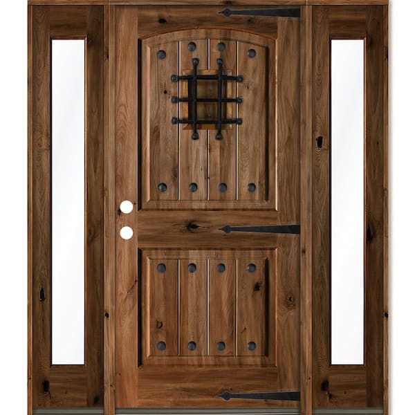 58 in. x 80 in. Medit. Knotty Alder Right-Hand/Inswing Clear Glass Provincial Stain Wood Prehung Front Door w/DFSL
