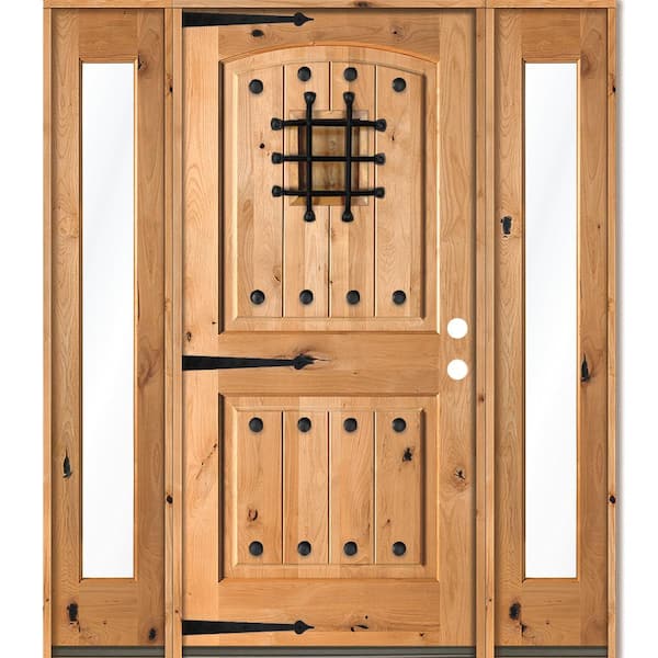 58 in. x 80 in. Mediterranean Knotty Alder Left-Hand/Inswing Clear Glass Clear Stain Wood Prehung Front Door w/DFSL
