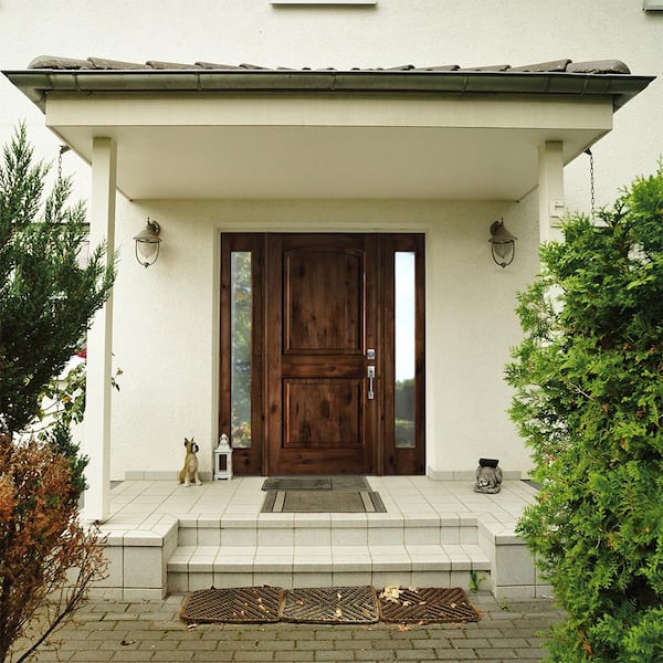 58 in. x 80 in. Rustic Alder Clear Low-E Unfinished Wood Left-Hand Inswing Prehung Front Door with Double Full Sidelites