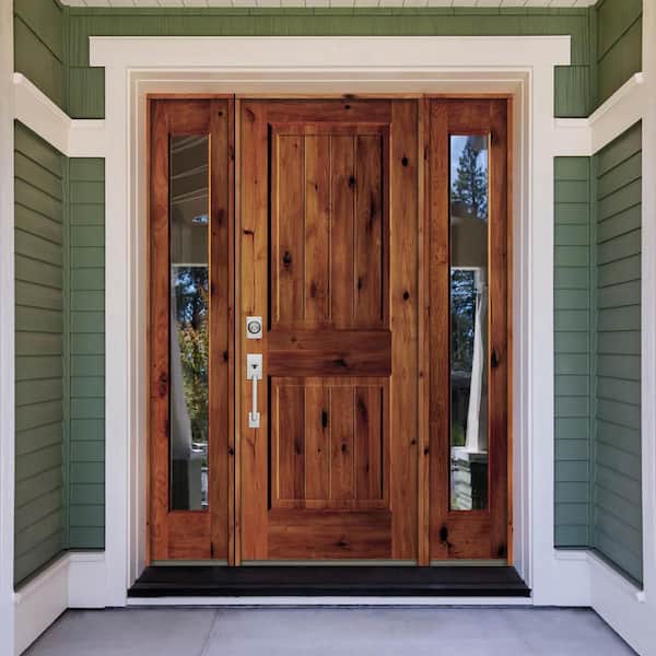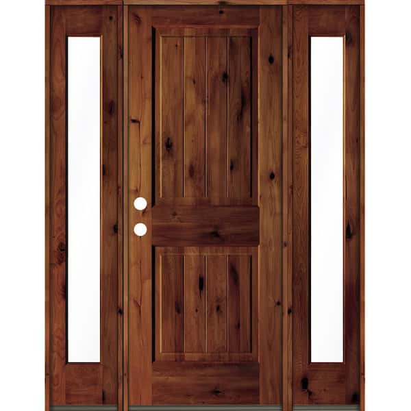 58 in. x 80 in. Rustic Alder Square Red Chestnut Stained Wood V-Groove Right Hand Single Prehung Front Door