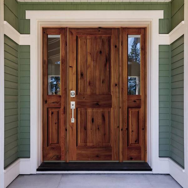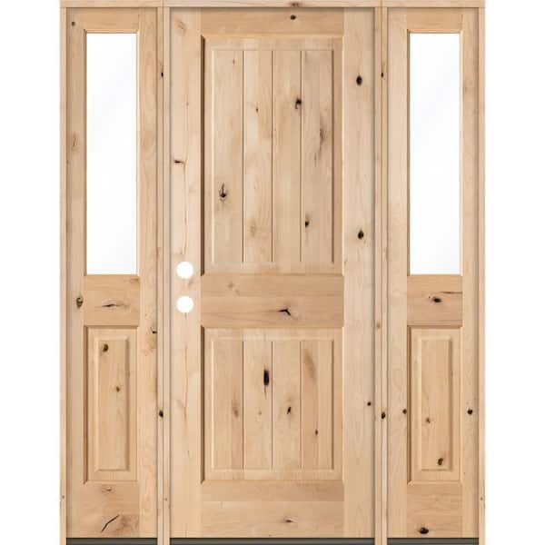 58 in. x 80 in. Rustic Unfinished Knotty Alder Sq-Top VG Wood Right-Hand Half Sidelites Clear Glass Prehung Front Door