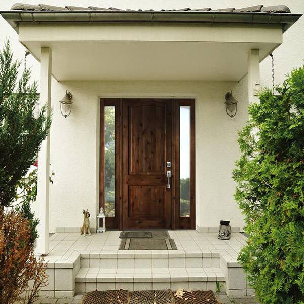 58 in. x 96 in. Knotty Alder 2 Panel Left-Hand/Inswing Clear Glass Black Stain Wood Prehung Front Door with Sidelites