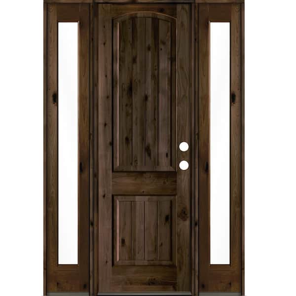 58 in. x 96 in. Rustic knotty alder Sidelite 2 Panel Left-Hand/Inswing Clear Glass Black Stain Wood Prehung Front Door