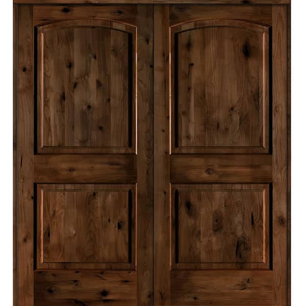 60 in. x 80 in. Knotty Alder 2 Panel Universal/Reversible Provincial Stain Wood Double Prehung Interior Door