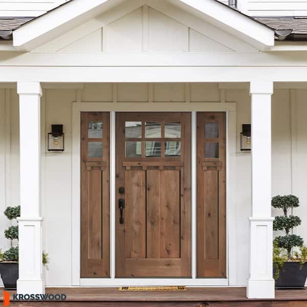 60 in. x 80 in. Knotty Alder Right-Hand/Inswing 6-Lite Clear Glass DS True Black Stain Wood Prehung Front Door w/ DSL