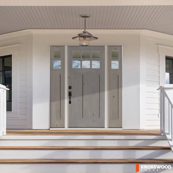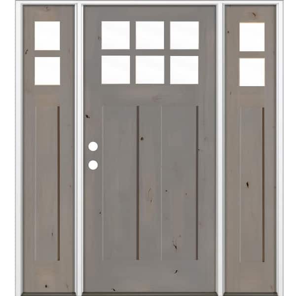 60 in. x 80 in. Knotty Alder Right-Hand/Inswing 6 Lite Clear Glass Weathered Gray Stain Wood Prehung Front Door with DSL