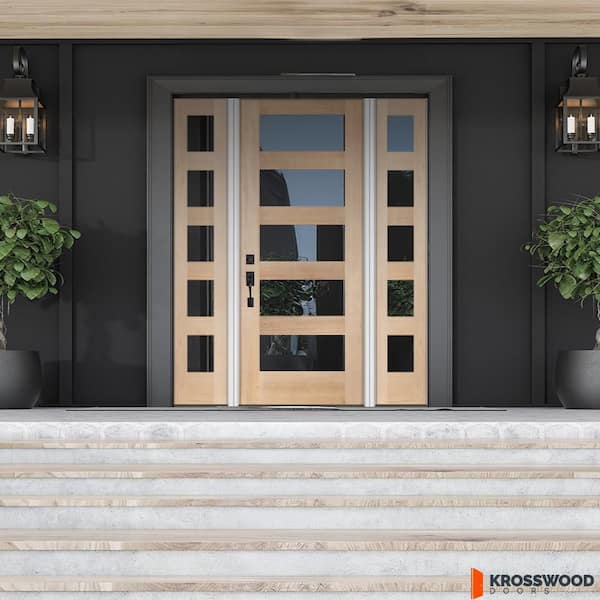 60 in. x 80 in. Modern Hemlock Right-Hand/Inswing 5-Lite Clear Glass Unfinished Wood Prehung Front Door with Sidelites