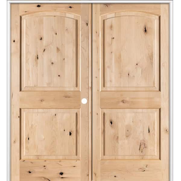 60 in. x 80 in. Rustic 2-Panel Arch Top Left Active Unfinished Knotty Alder Wood Double Prehung Interior Door