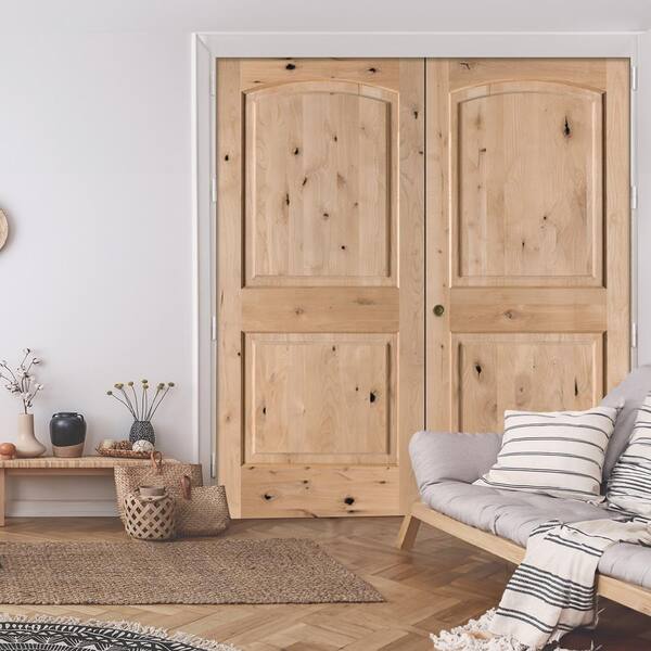 60 in. x 80 in. Rustic 2-Panel Arch Top Right Active Unfinished Knotty Alder Wood Double Prehung Interior Door