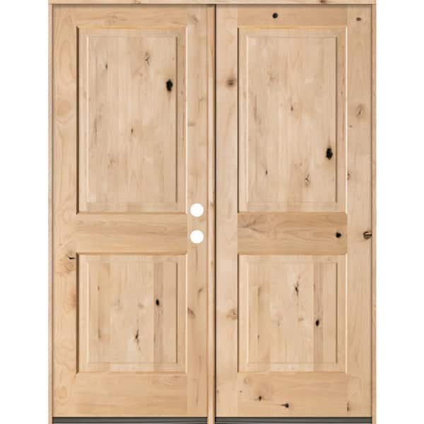 60 in. x 80 in. Rustic Knotty Alder 2-Panel Square Top Unfinished Left-Hand Inswing Wood Double Prehung Front Door