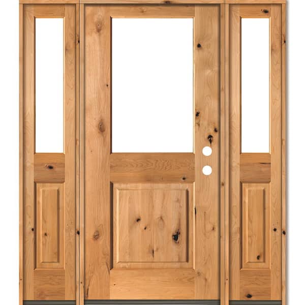 60 in. x 80 in. Rustic Knotty Alder Wood Clear Half-Lite Clear Stain Left Hand Single Prehung Front Door/Sidelites