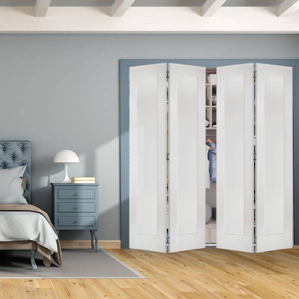 60 in. x 80 in. Shaker 1-Panel Solid Core Primed MDF Wood Interior Bifold Double Door with Hardware