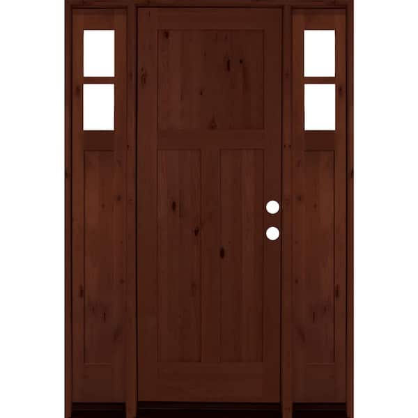 60 in. x 96 in. Alder 3 Panel Left-Hand/Inswing Clear Glass Red Mahogany Stain Wood Prehung Front Door with Sidelites