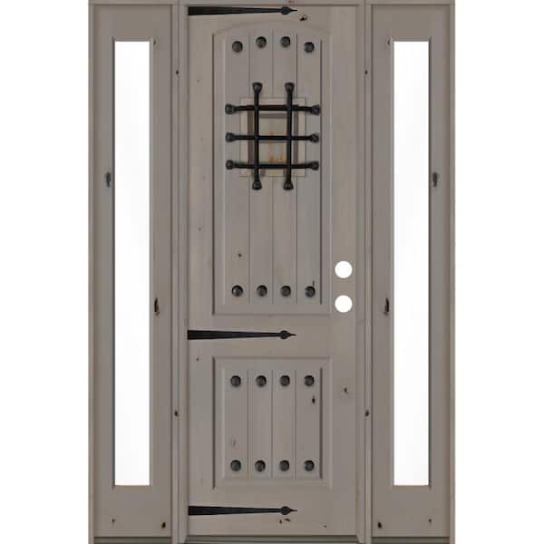 60 in. x 96 in. Mediterranean Knotty Alder Left-Hand/Inswing Clear Glass Grey Stain Wood Prehung Front Door w/Sidelite