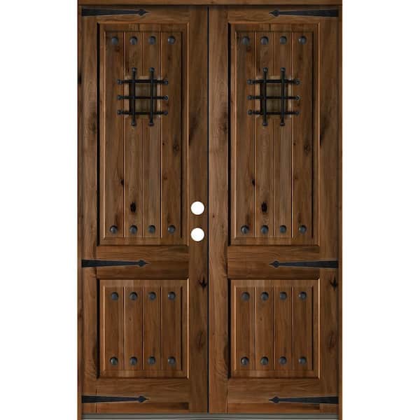 60 in. x 96 in. Mediterranean Knotty Alder Square Top with Provincial Stain Left-Hand Wood Double Prehung Front Door