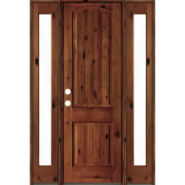 60 in. x 96 in. Rustic Alder Arch Red Chestnut Stained Wood with V-Groove Right Hand Single Prehung Front Door