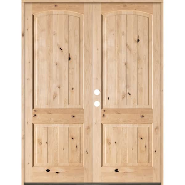 60 in. x 96 in. Rustic Knotty Alder Arch Top Unfinished /V-Groove Right-Hand Inswing Wood Double Prehung Front Door