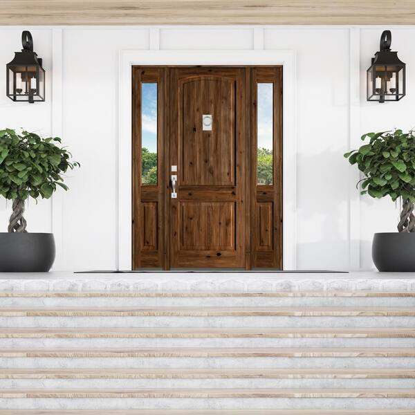 60 in. x 96 in. Rustic Knotty Alder Arch clear stain Wood w.V-Groove Right Hand Single Prehung Front Door/Half Sidelites