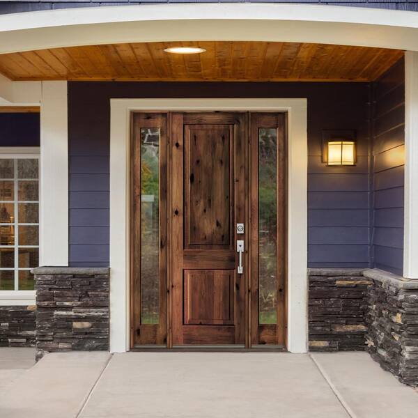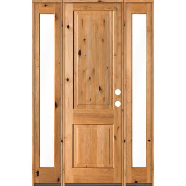 60 in. x 96 in. Rustic Knotty Alder Square clear stain Wood Left Hand Inswing Single Prehung Front Door/Full Sidelites