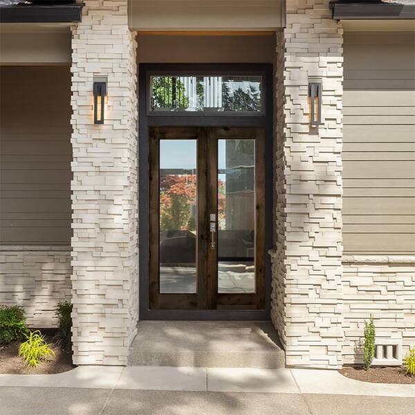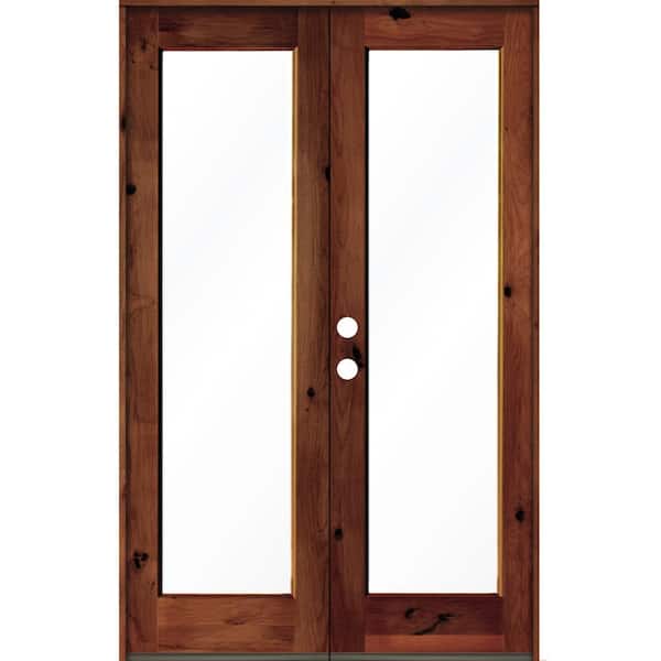 60 in. x 96 in. Rustic Knotty Alder Wood Clear Full-Lite Red Chestnut Stain Right Active Double Prehung Front Door