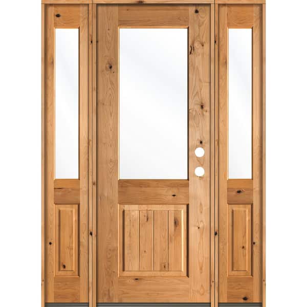 60 in. x 96 in. Rustic Knotty Alder Wood Clear Half-Lite Clear Stain w.VG Right Hand Single Prehung Front Door/Sidelites