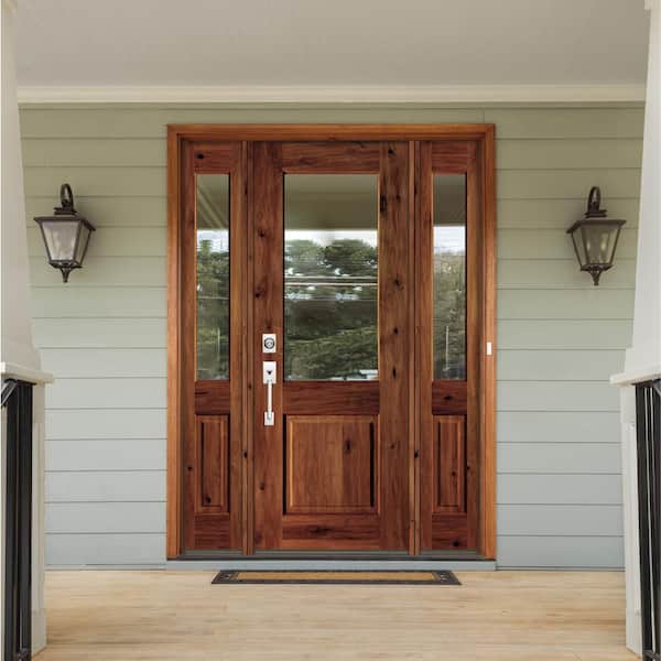 60 in. x 96 in. Rustic Knotty Alder Wood Clear Half-Lite Provincial Stain Right Hand Single Prehung Front Door/Sidelites