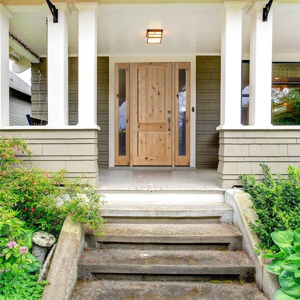 60 in. x 96 in. Rustic knotty alder Sidelite 2 Panel Left-Hand/Inswing Clear Glass Grey Stain Wood Prehung Front Door