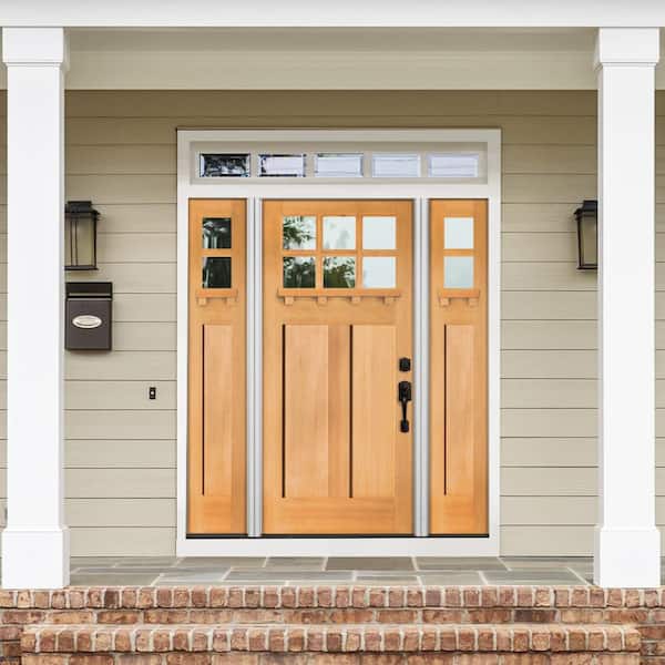 64 in. x 80 in. Craftsman 6-Lite Clear Glass Left Hand Red Chestnut Stain Hemlock Wood Prehung Front Door w/ DSL and DS