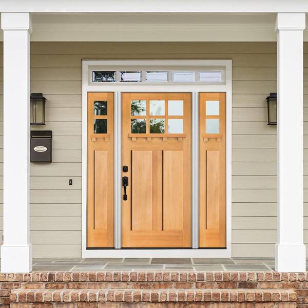 64 in. x 80 in. Craftsman 6-Lite Clear Glass Right Hand Red Chestnut Stain Hemlock Wood Prehung Front Door w/ DSL and DS