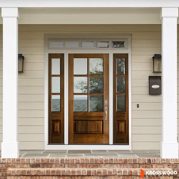 64 in. x 80 in. Farmhouse 3/4 Lite Clear Glass Left-Hand/Inswing Provincial Stain Hemlock Prehung Front Door w/DSL