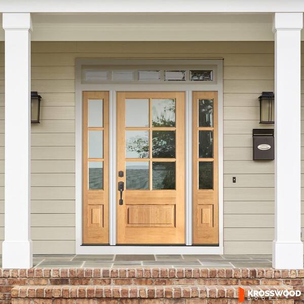 64 in. x 80 in. Farmhouse 3/4 Lite Clear Glass Right-Hand/Inswing Clear Stain Hemlock Prehung Front Door w/DSL